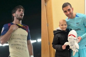 尽管这粒进球没能改变诺坎普球场的大屏幕比分,但费兰打底衫上的文字在几秒钟内便火速传遍全网。这位巴萨前锋一直全身心支持玛丽亚的抗癌斗争,他想通过这个细节清晰地表明:玛丽亚的记忆依然活在球队之中。进球被吹了,但费兰对女孩家人的爱与关怀已传达给了全世界。