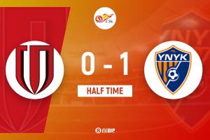 半场-蓉城暂0-1玉昆 克莱伯破门拜合拉木两进球越位鲍亚雄神扑